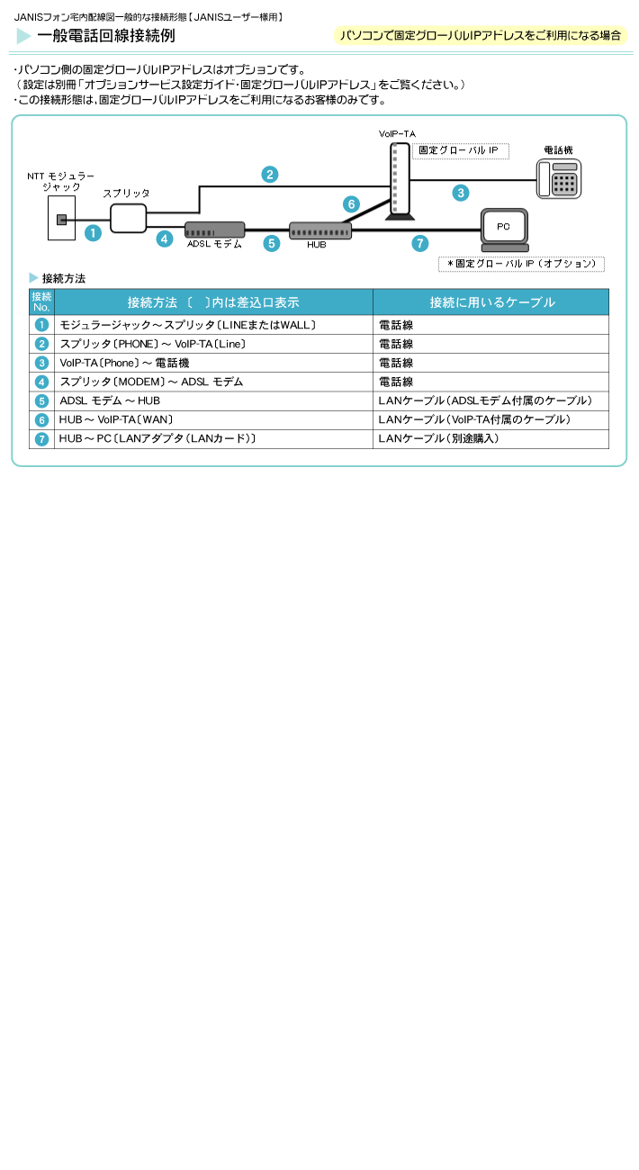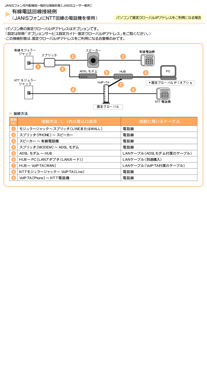 JANISフォン宅内配線図【ADSL】