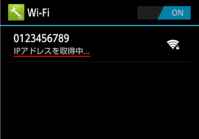 (6)接続されると、「IPアドレスを取得中…」になりますので、しばらくお待ちください