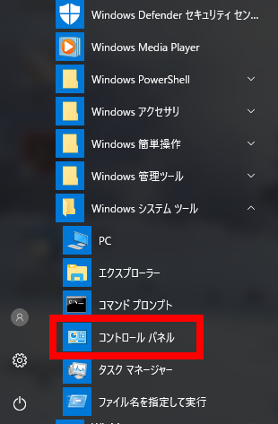 クリエイターズアップデートを適用している場合は、Windowsボタンをクリックし、「Windows システムツール」から「コントロールパネル」をクリックします。