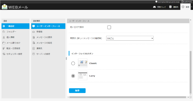 JANIS Webメールサービスは「Larry」「Classic」の2種類の画面デザインをご使用いただけるサービスです。
